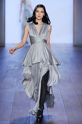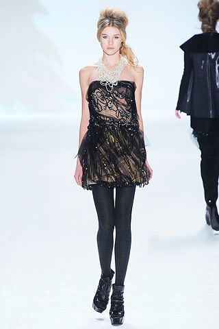 Last but definitely not least... My favorite outfit from the Vera Wang show. `=) I love the short cocktail dress, and while I can't really rock strapless all that well... I'd love to just own this dress. I'd probably wear it exactly the way the model wears it, minus the necklace. Cocktail/short formal dresses are sure to be in once fall/winter comes around thanks in part to the the holidays. There's always going to be a reason to get dressed up for.