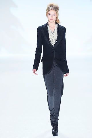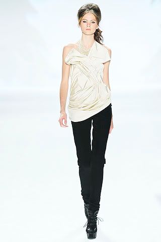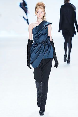 As you know, I tend to be slightly biased when it comes to Vera Wang. I loved her Spring/Summer collection, and the same goes for her Fall/Winter. Although, I feel like she went back to basics, color wise. It seems as though black is back! with her. And, coming from someone who's worked at a high-end department store, black was always back with me. However, coming from Vera, it looks so much cooler.